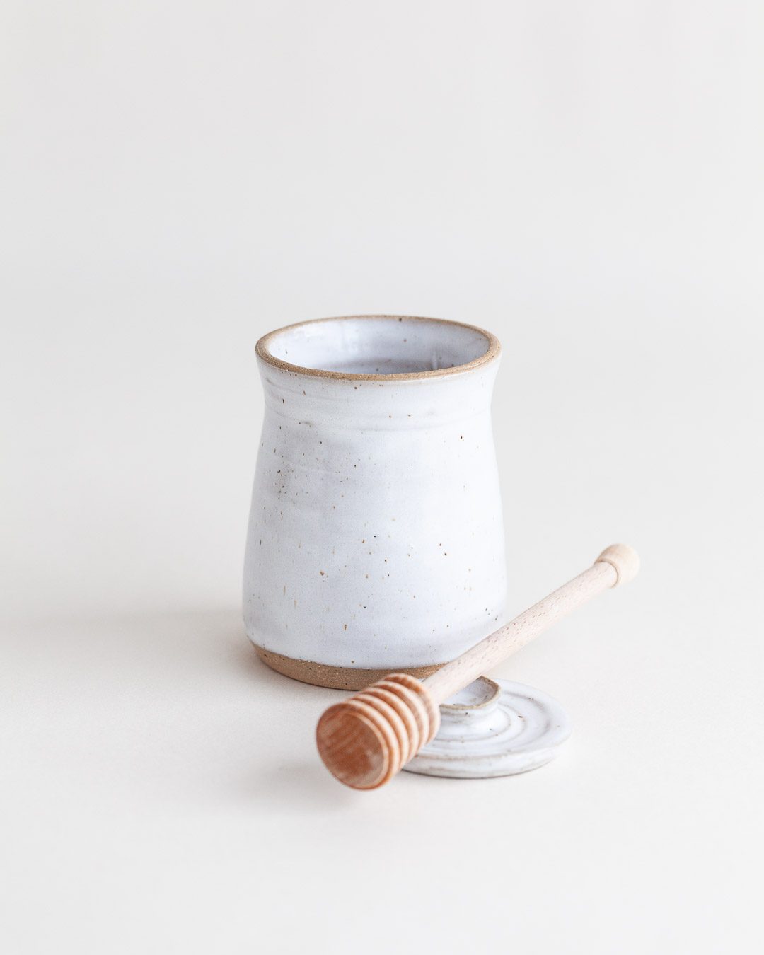 Este hermoso tarro de miel es la manera perfecta de almacenar y servir tu miel favorita. El frasco está hecho a mano en cerámica de gress duradera y está cubierto con un esmalte apto para alimentos. Viene con una tradicional paleta de madera acanalada, que tiene el tamaño perfecto para sacar miel y le da un toque de encanto clásico.